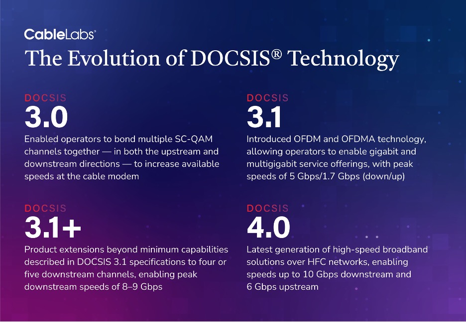 - Each new generation of DOCSIS®️ technology has enabled operators to deliver higher speeds, increased capacity, lower latency and more robust security.